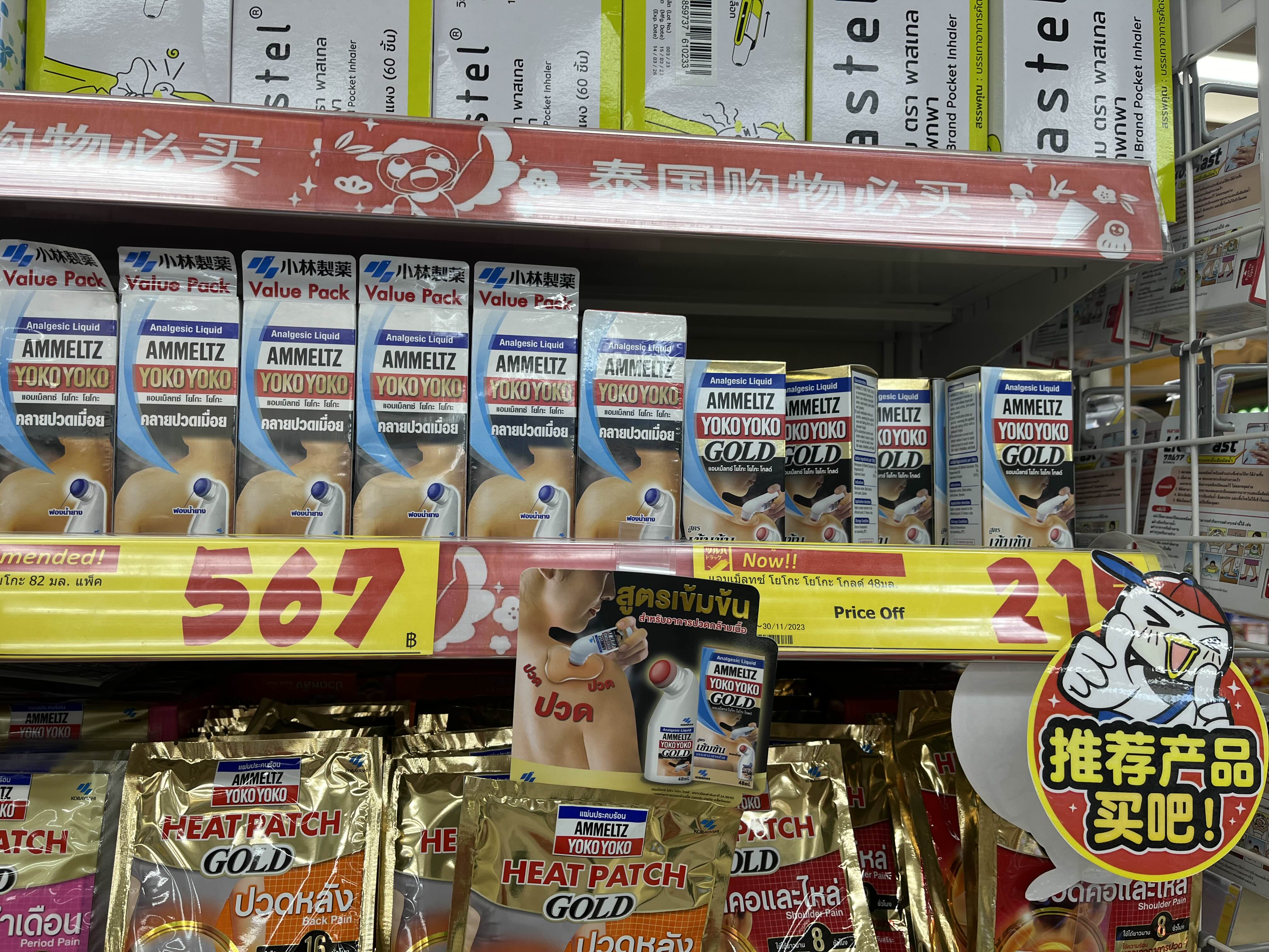 일본에서 유명한 샤론파스입니다. 동전 파스보다 얇아서 흡수가 좀 빠르다는 장점이 있는 제품으로 태국에서도 저렴하게 구입할 수 있어요.
