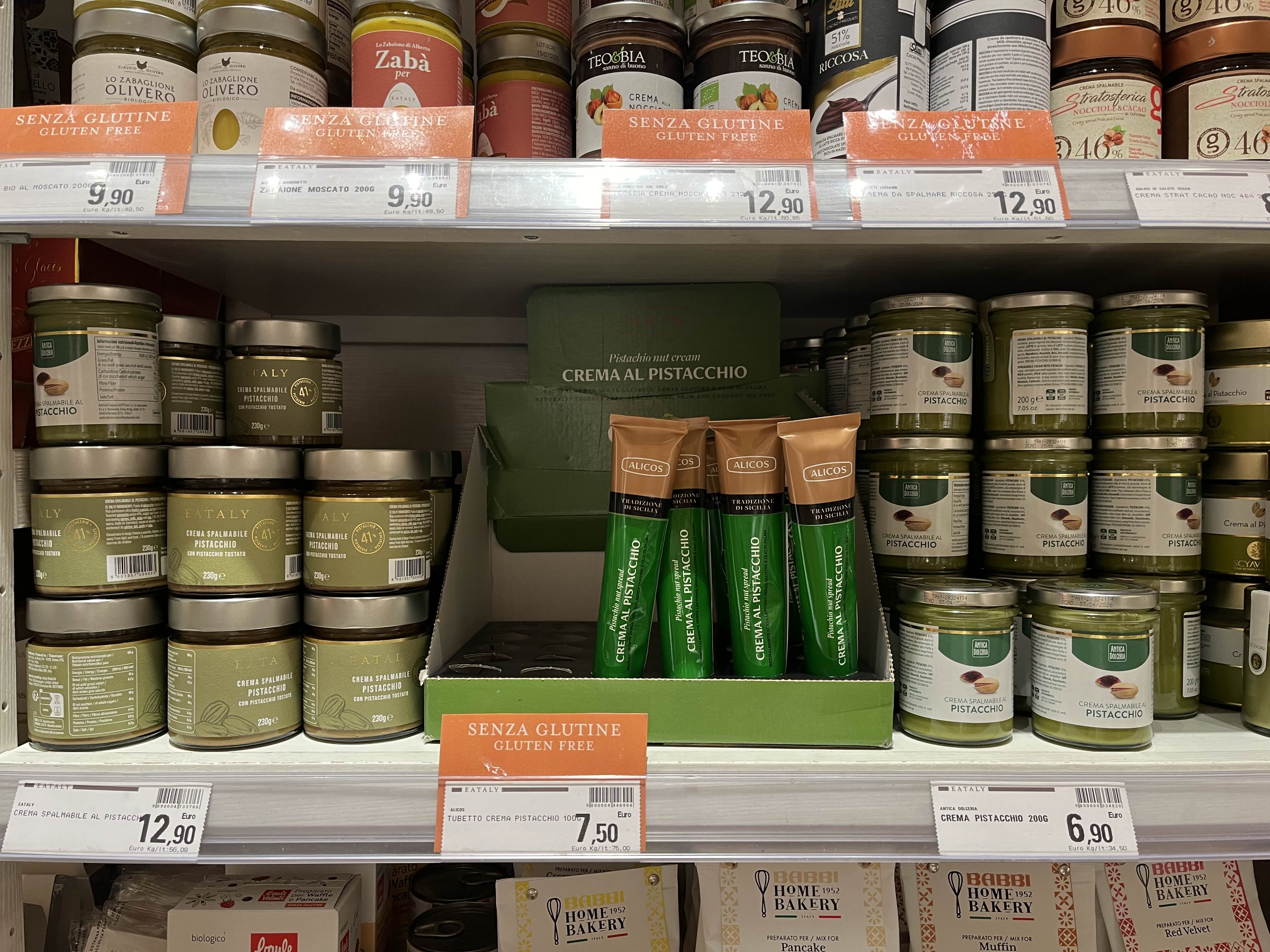이탈리아 마트 쇼핑은 코나드에서 대부분 했습니다. 피스타치오가 그려져 있으면 담으라는 얘기가 있을 정도로 피스타치오 제품들이 다양하게 있고 품질도 좋아요. 그중에서도 추천드리는 이탈리아 과자는 물리노비앙코 바이오치 비스킷과 노비초콜릿입니다.