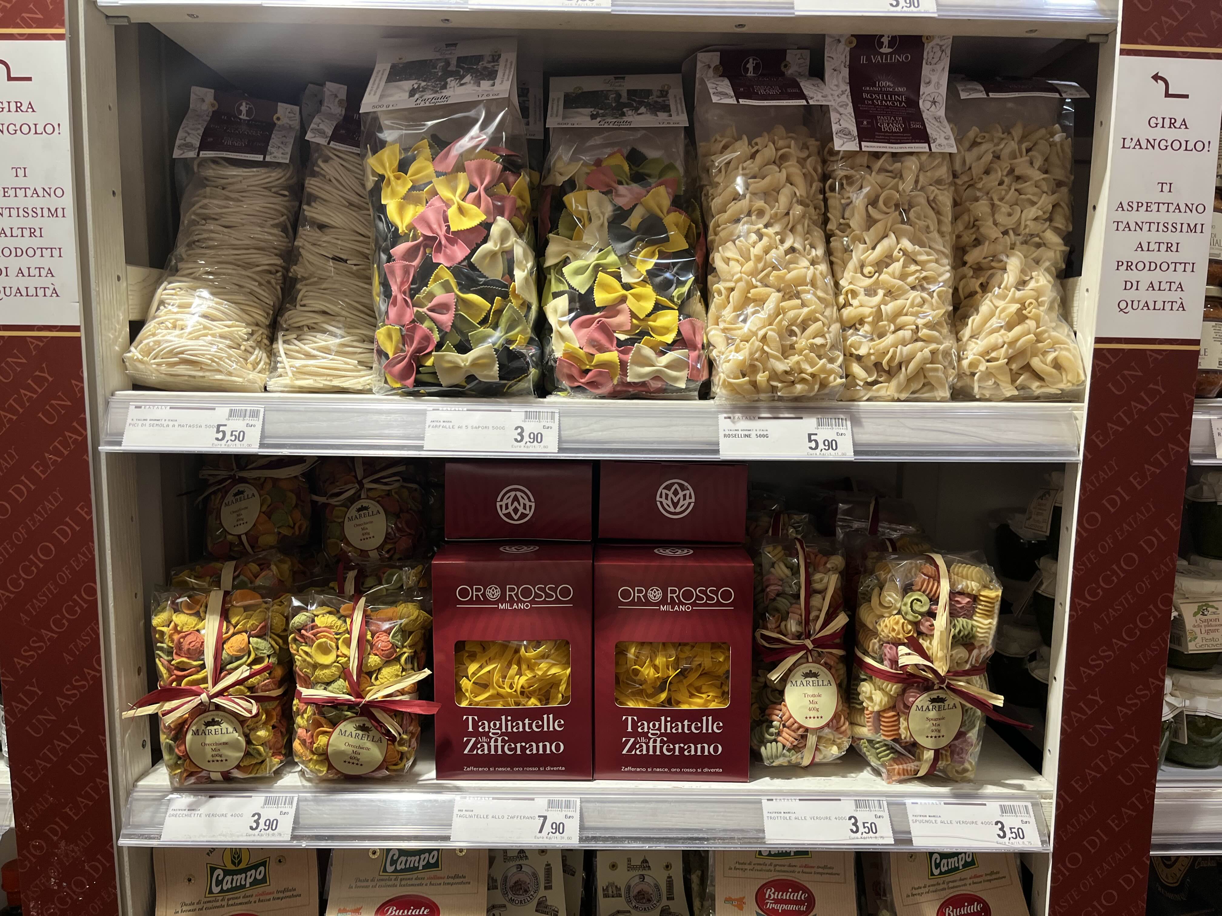 이탈리아에서는 리본 모양 파스타 그리고 생면, 글루텐프리 등 다양한 형태의 파스타면이 있어요. 그리고 이탈리아에는 훨씬 많은 브랜드들이 있어 고르는 재미가 있습니다. 양식을 좋아하는 분들이라면 마렐라 제품은 한 번쯤 들어보셨을 텐데요 현지 가격이 훨씬 저렴하니 구입해 보세요. 이탈리아를 대표하는 건축물인 콜로세움, 성천사의 성 모양 파스타가 있는 monumenti 제품도 맛있습니다.
