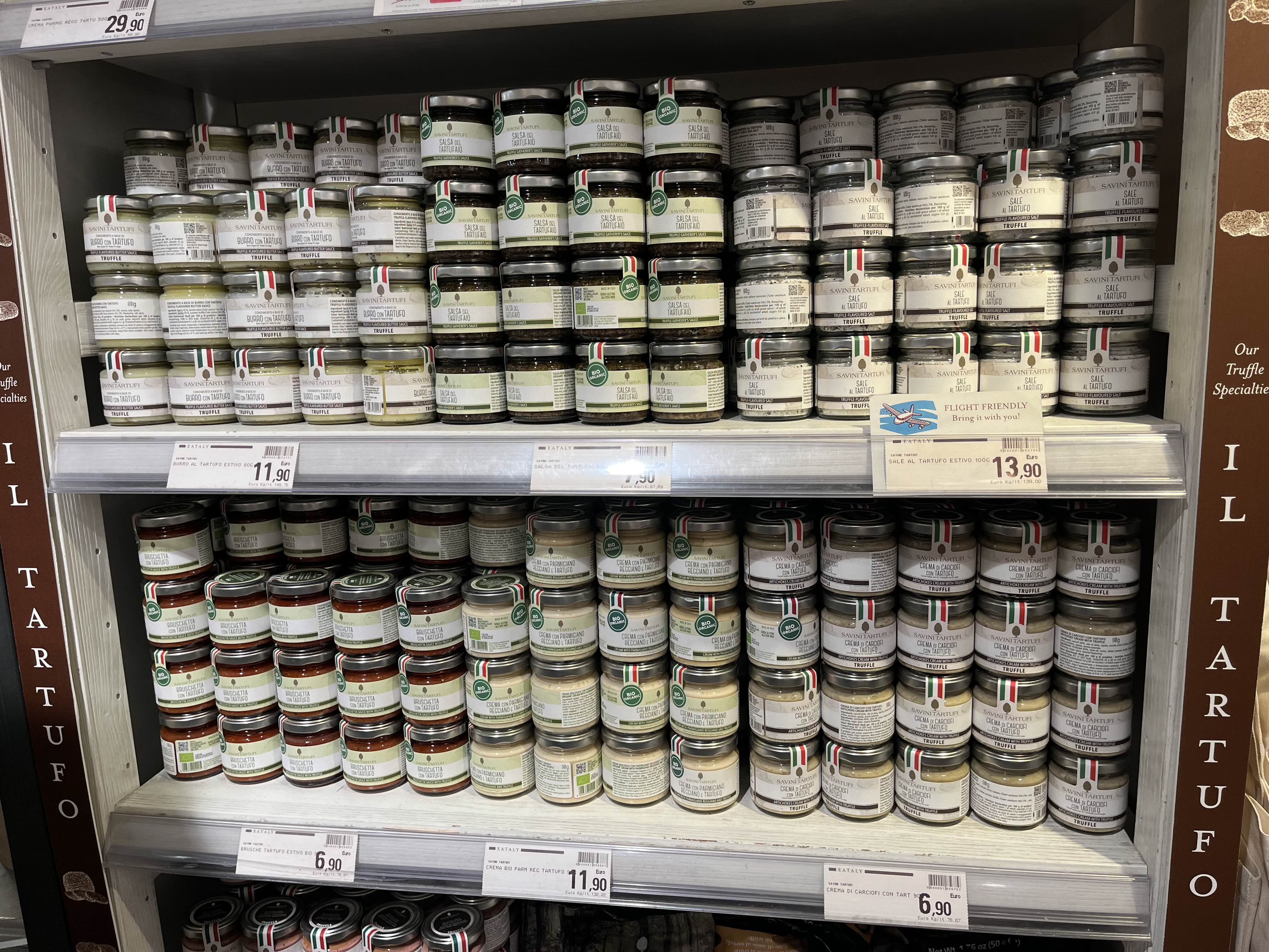 사비니 트러플 제품은 백화점, 마켓컬리에서만 판매되는 고급 브랜드인데요 현지에서 50%의 금액으로 구입할 수 있어 추천드립니다. 트러플 제품 역시 원료와 함량을 비교해 보시고 구입하면 좋아요. 사비니의 품질과 풍미는 믿고 구매하시면 되고 무게가 있는 트러플 오일은 이탈리아 출국 시 면세점에서 구입하는 것도 방법입니다.