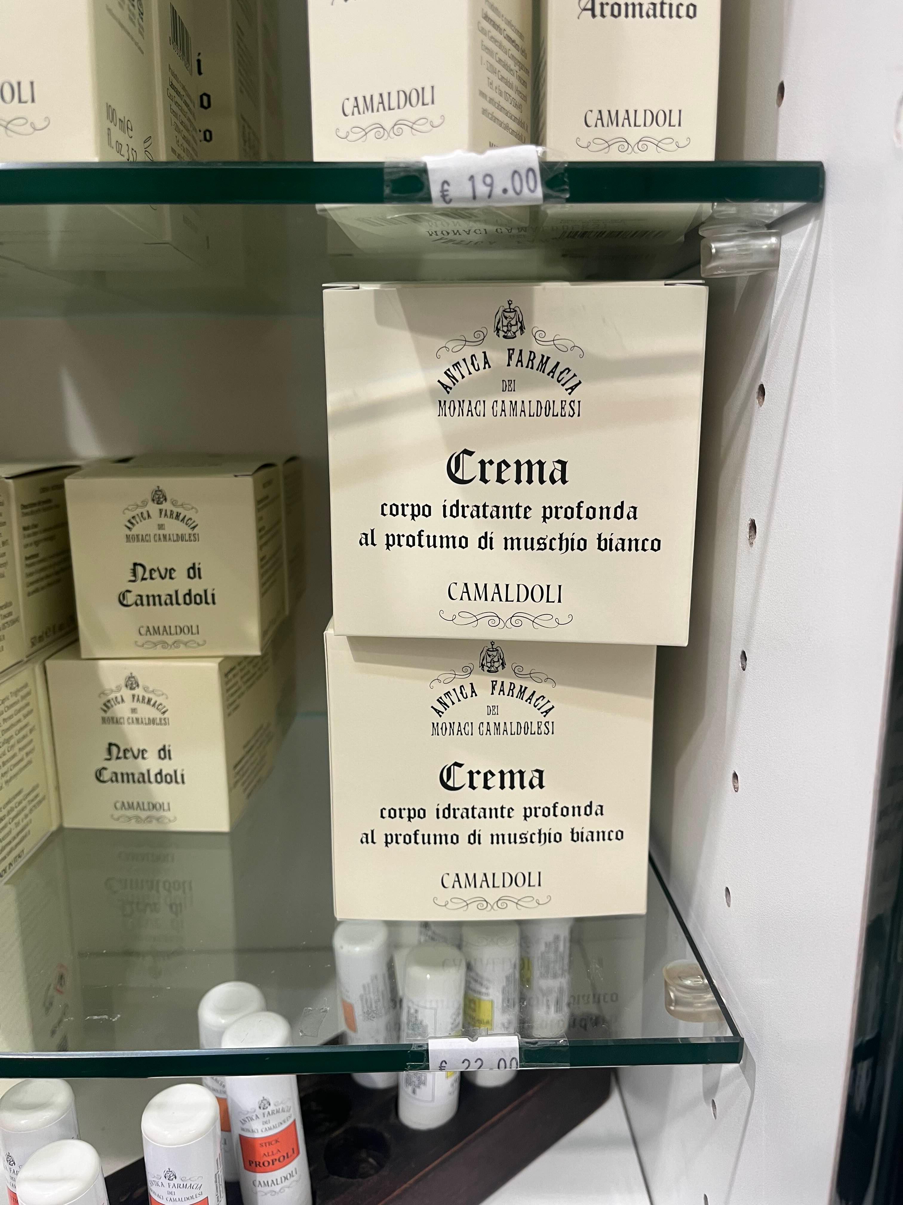 까마돌리크림은 수도사들이 만든 유기농 화장품으로 산타마리아노벨라 제품의 저렴이 버전으로 유명합니다. 현지 약국에서 판매하는데 판매처가 한정되어 있어 미리 알아보고 가는 것을 추천드려요.
