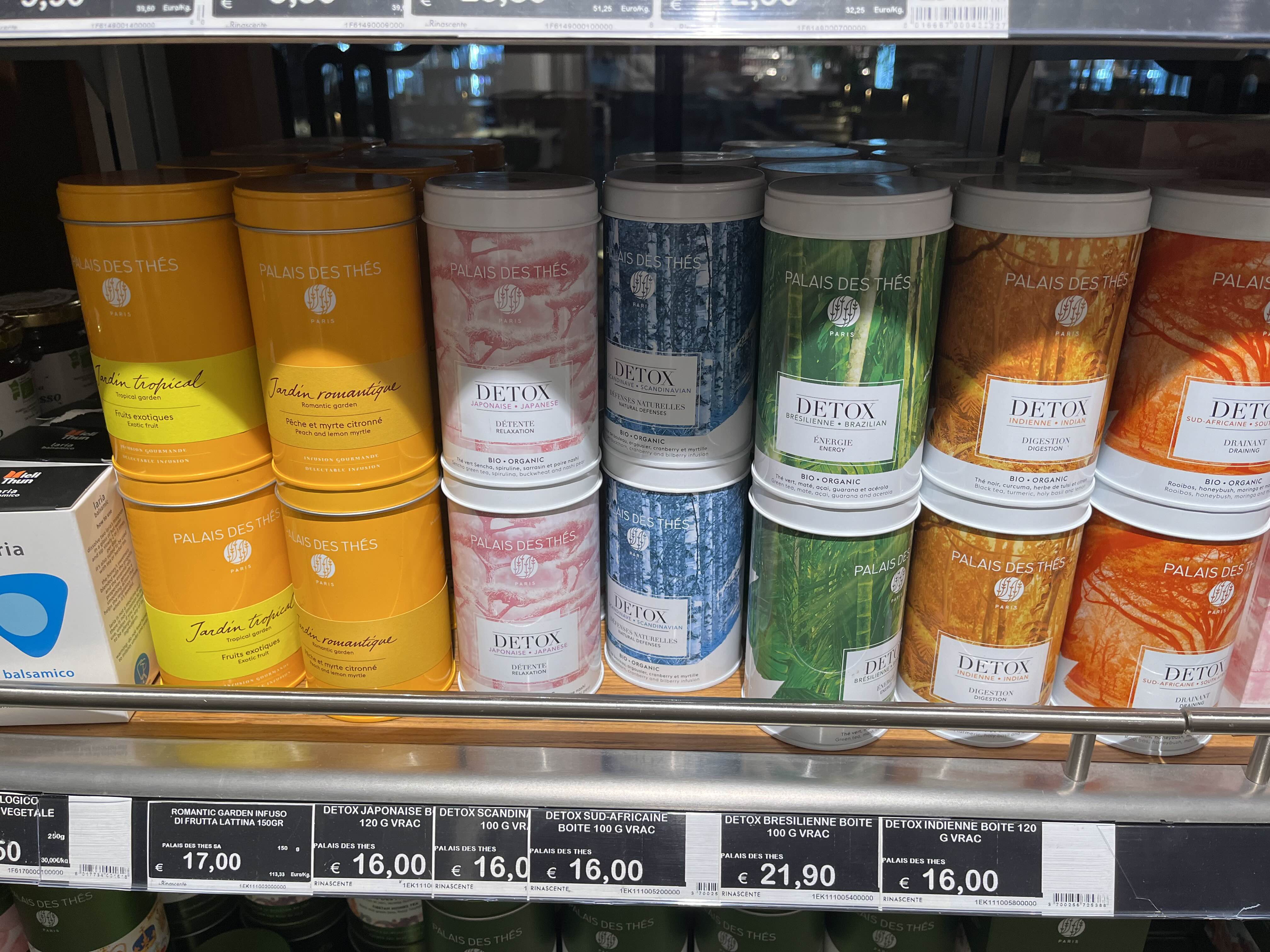 팔레데떼는 프랑스 프리미엄 티 브랜드인데 이탈리아에서도 좋은 가격으로 판매되고 있어 구입하기 좋아요. 쿠스미티도 프랑스 현지 가격과 크게 차이가 없으니 함께 구매해 보세요.