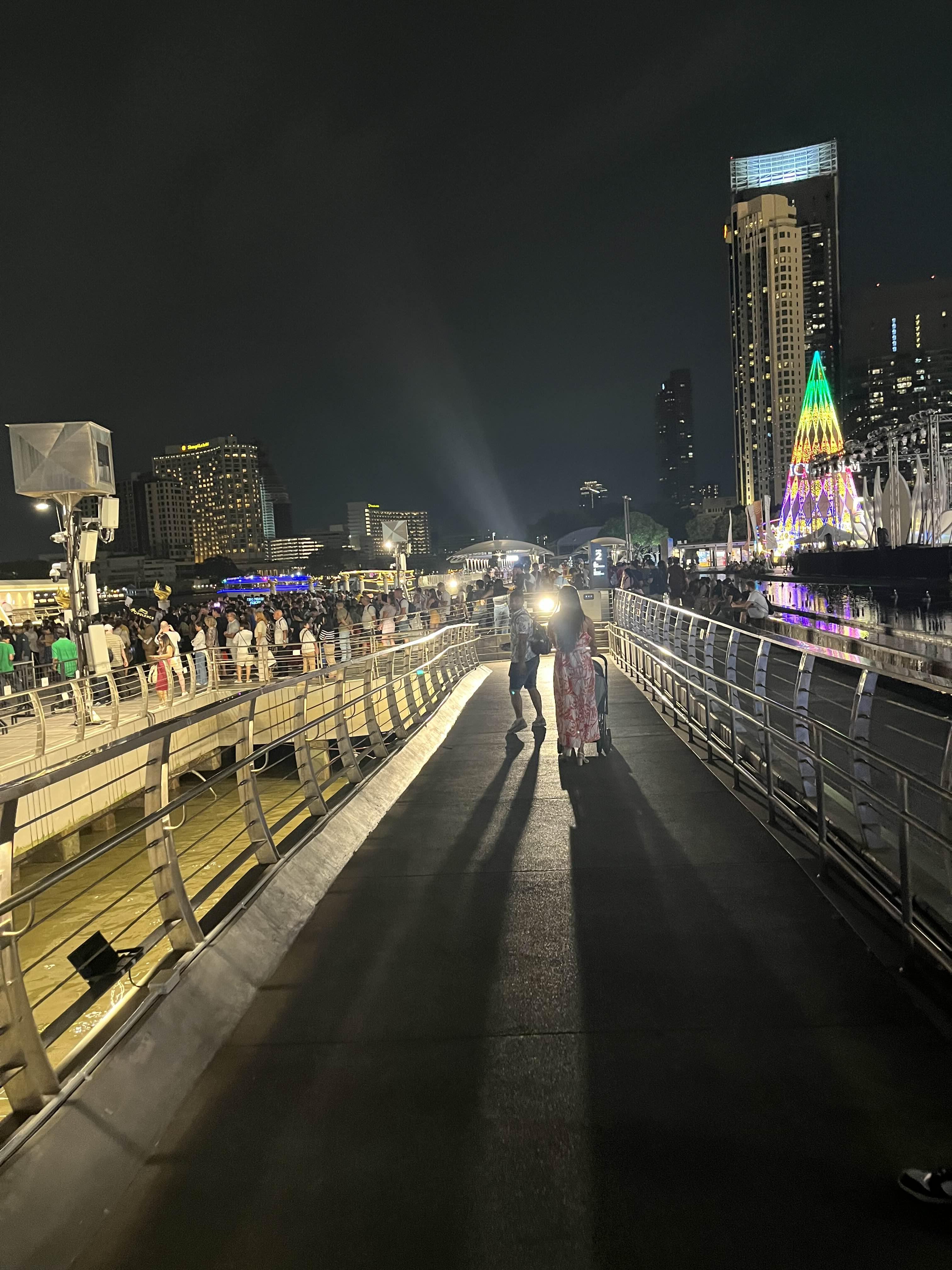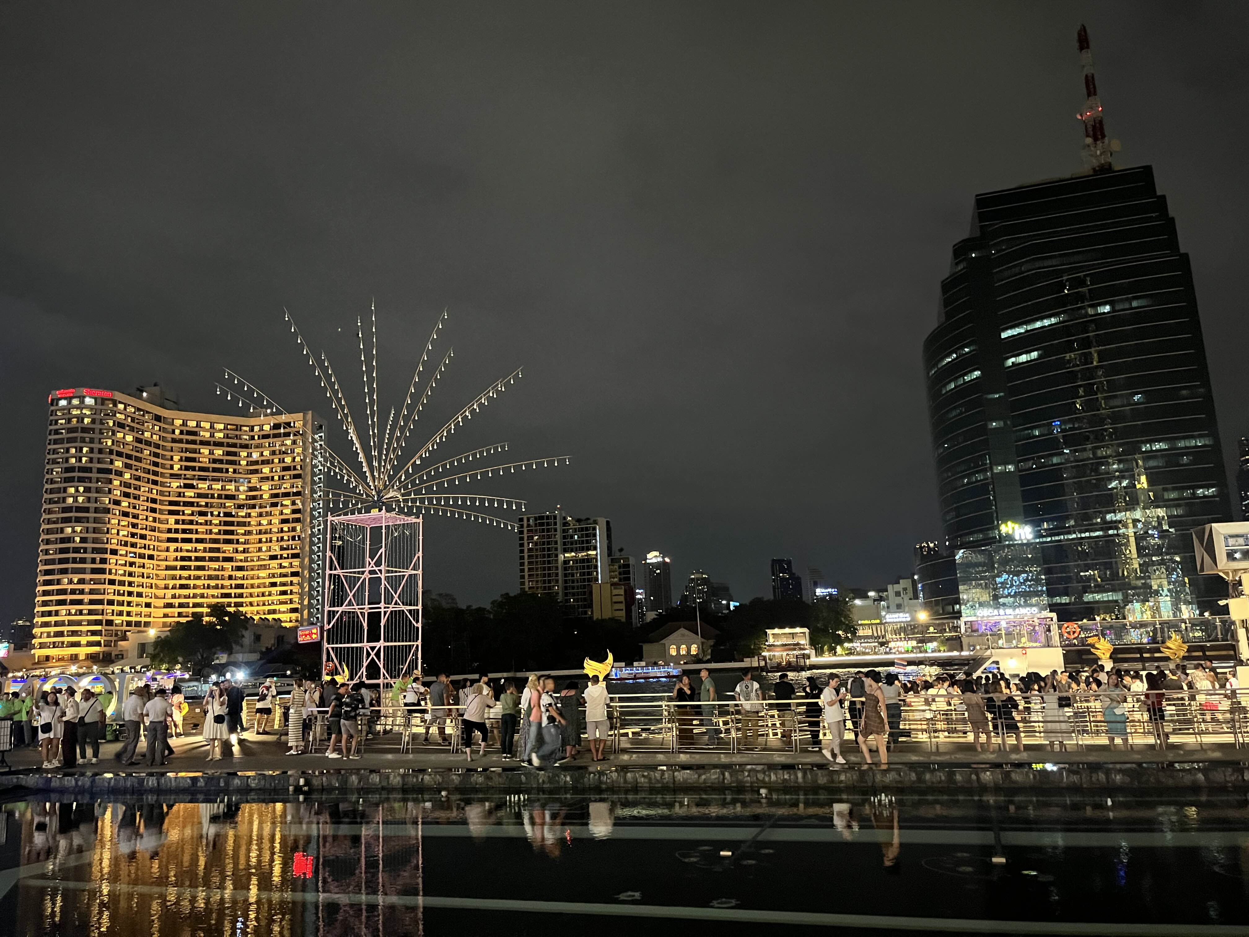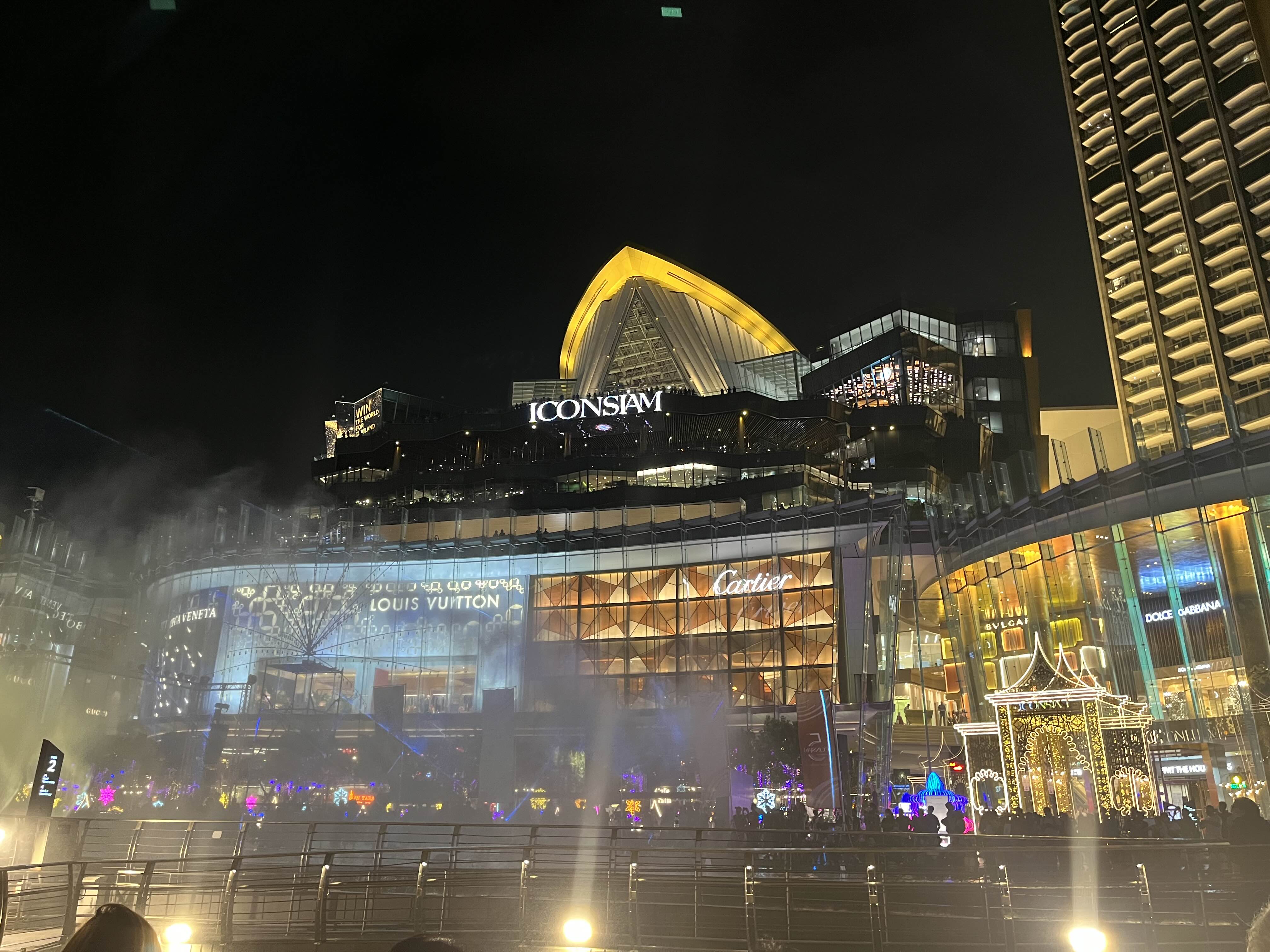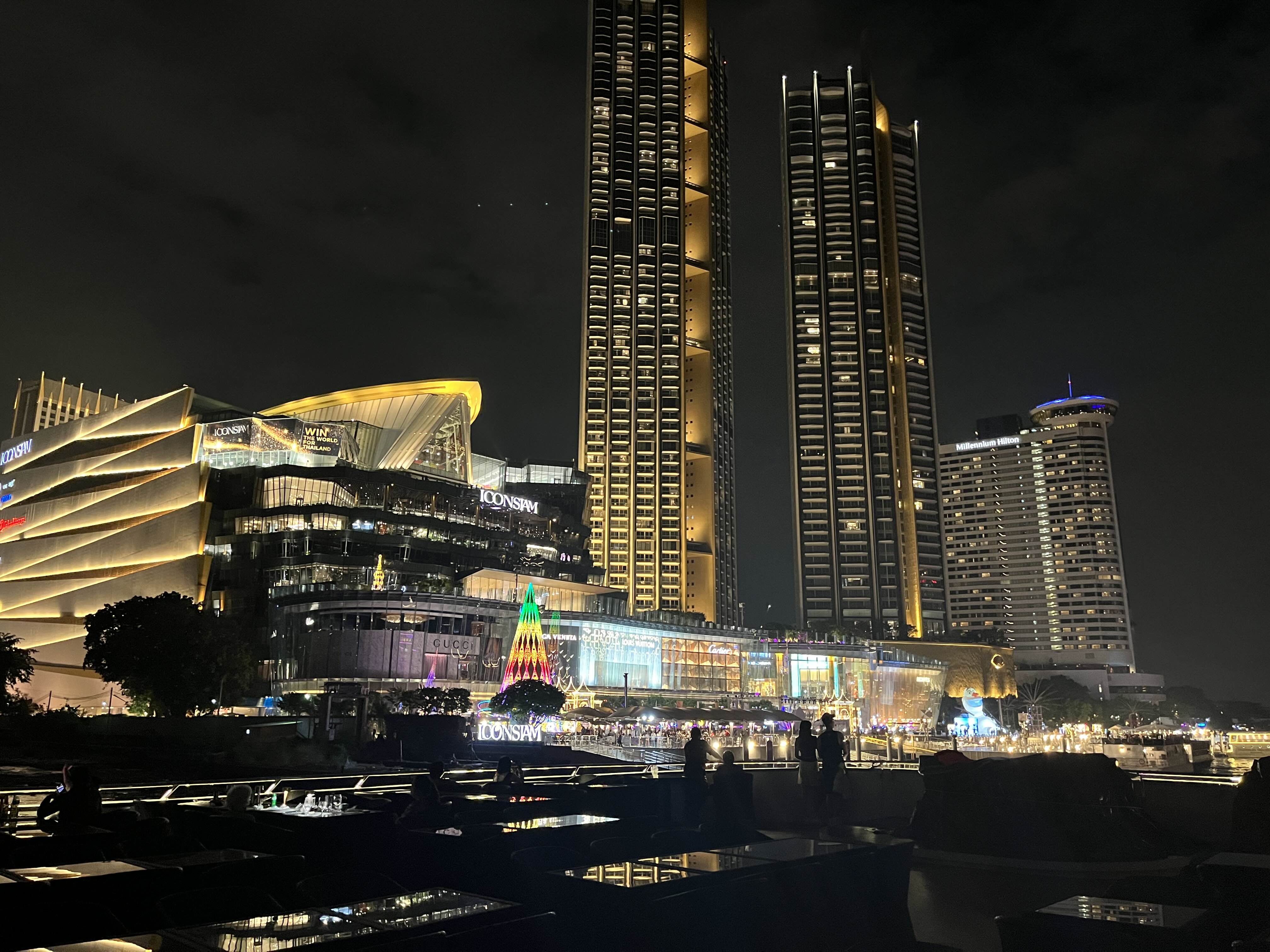 탑승 전에 구경한 아이콘시암 분수쇼예요. 크루즈 탑승지에서 바라보니 아이콘 시암이 더 예쁘더라구요. 아이콘시암 분수쇼는 평일 7시, 주말(금, 토, 일)에는 저녁 6시와 8시 두 번에 걸쳐서 하고 있으니 시간이 되시는 분들은 구경해 보세요.