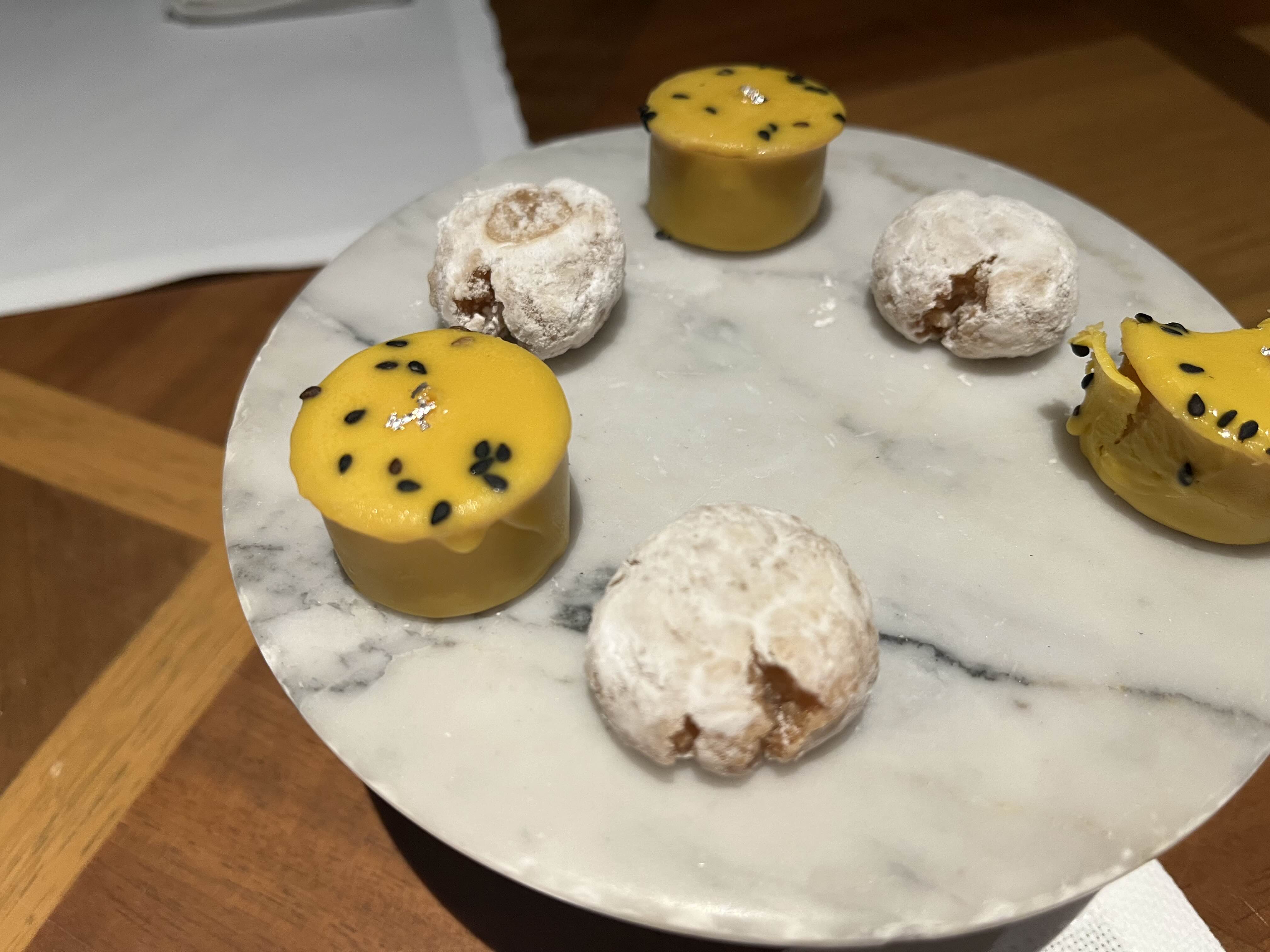 패션프루츠 초콜릿과 슈가파우더를 입힌 쿠키가 후식으로 나왔어요. 배가 불러서 다 먹진 못했는데 눈으로만 봐도 아기자기하고 예쁜 디저트였어요.