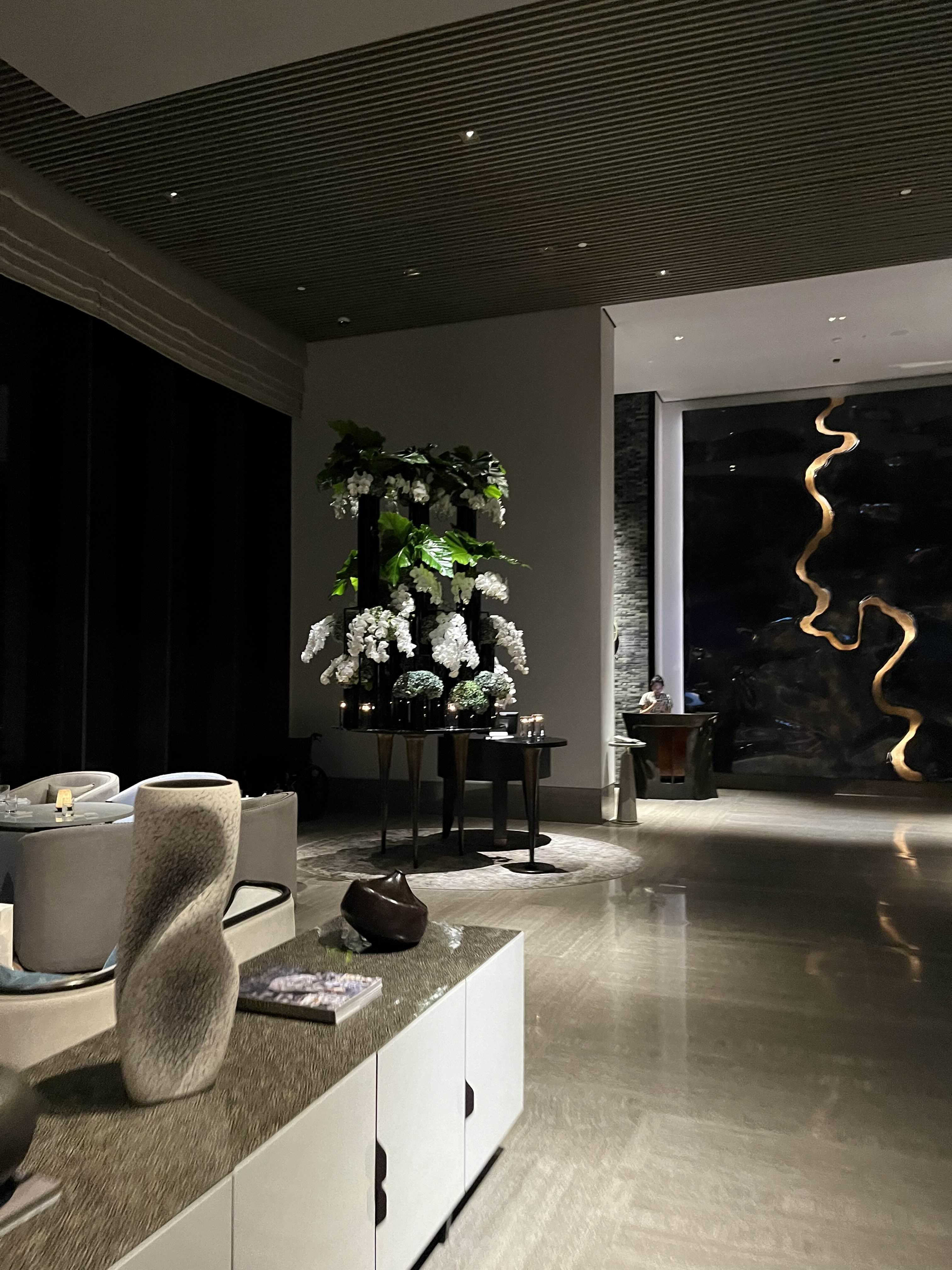 조경과 조명이 정말 멋있어요. 밤 수영하는 사람은 없네요.