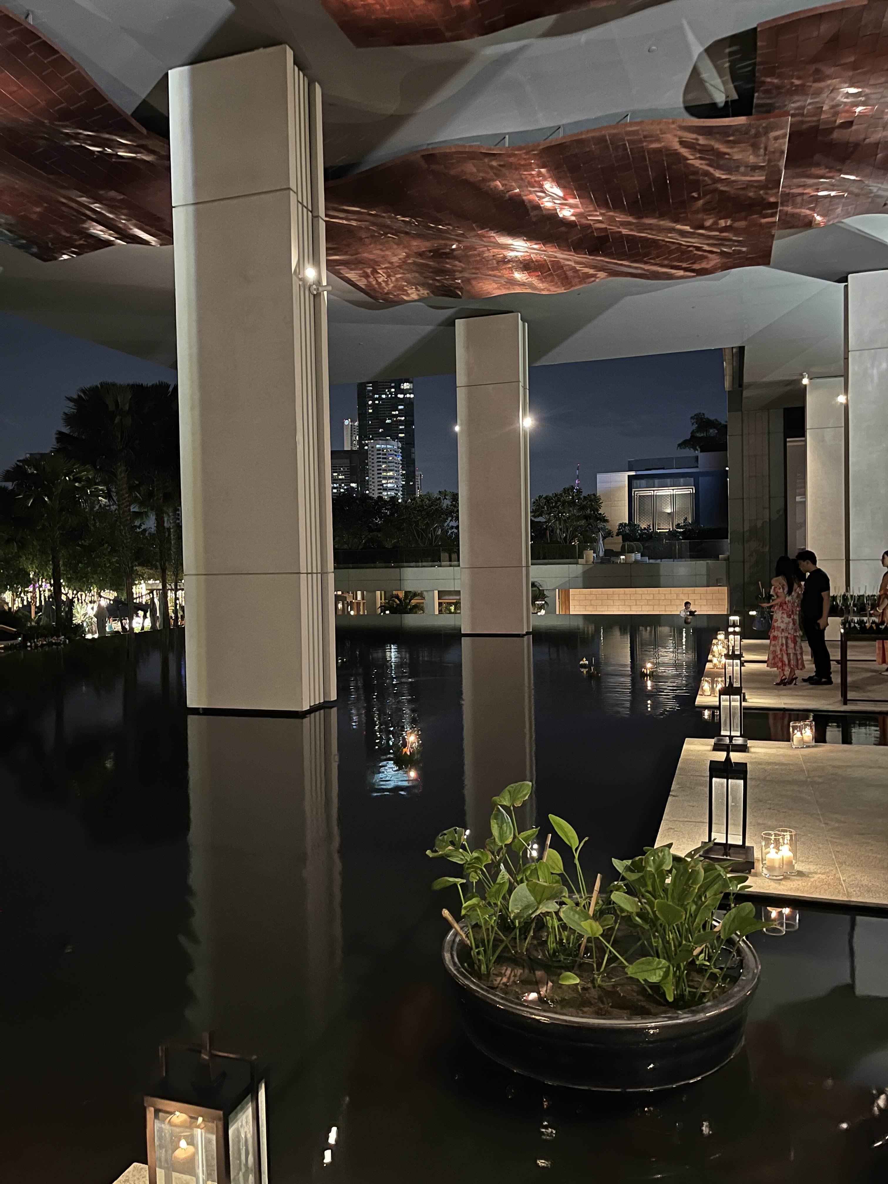 5성급 호텔인 만큼 깨끗하고 테이블 셋팅도 예쁘죠. 저희는 야외 좌석으로 예약 후 안내를 받았고 멋진 수영장이 바로 보여서 좋았습니다. 그리고 방문한 날이 러이끄라통 축제날이라 8시 경에 불꽃 축제가 있을거라고 하더라구요. 운 좋게 불꽃 놀이도 즐기고 끄라통도 띄웠는데 지금 생각해도 타이밍이 정말 좋았던 것 같네요. 좋은 추억 만들어주셔서 다시 한 번 감사합니다.