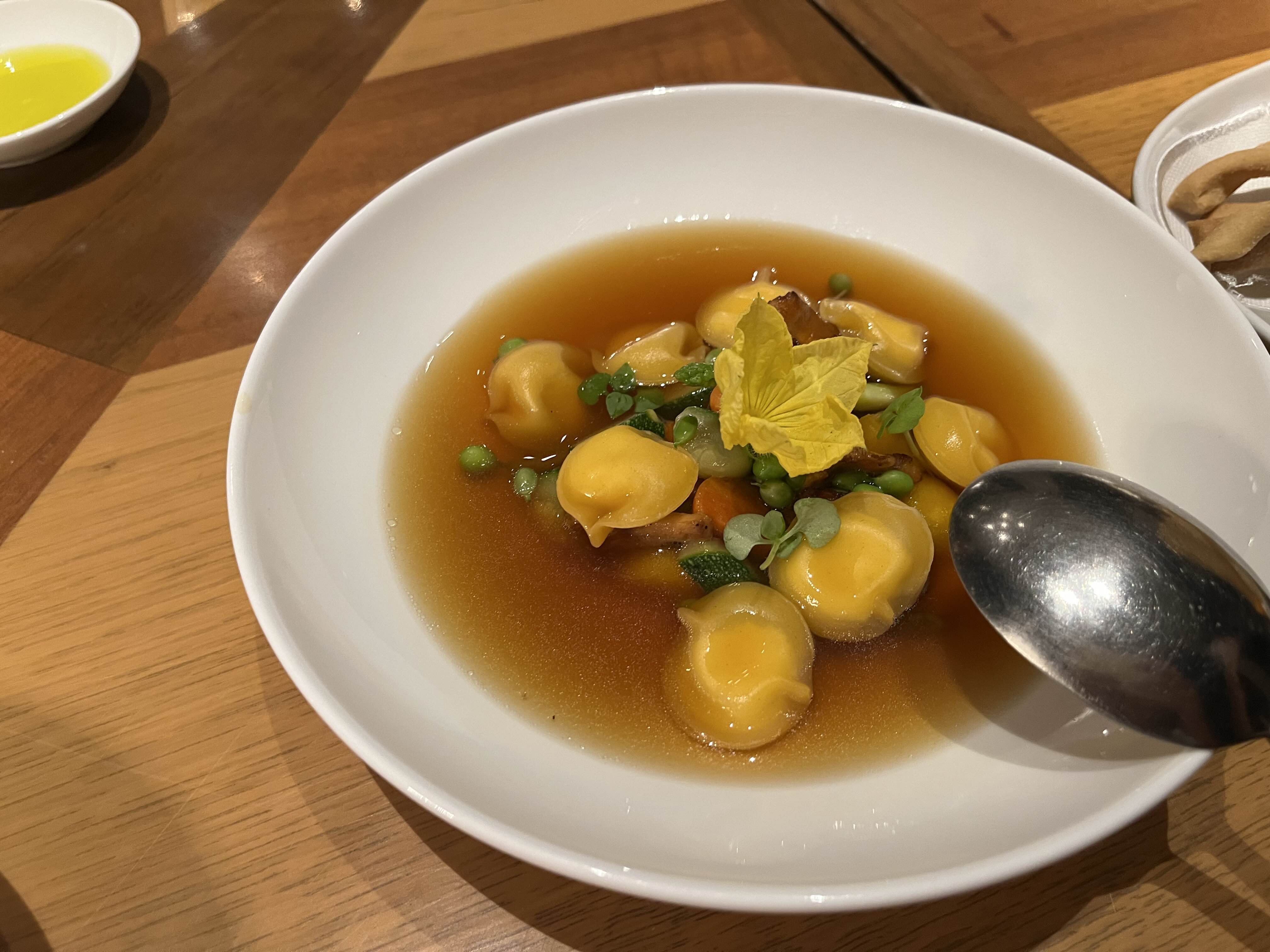 야채 육수에 이태리식 만두인 카펠레티가 든 스프입니다. 간이 세지 않고 가볍게 먹기 괜찮았습니다.