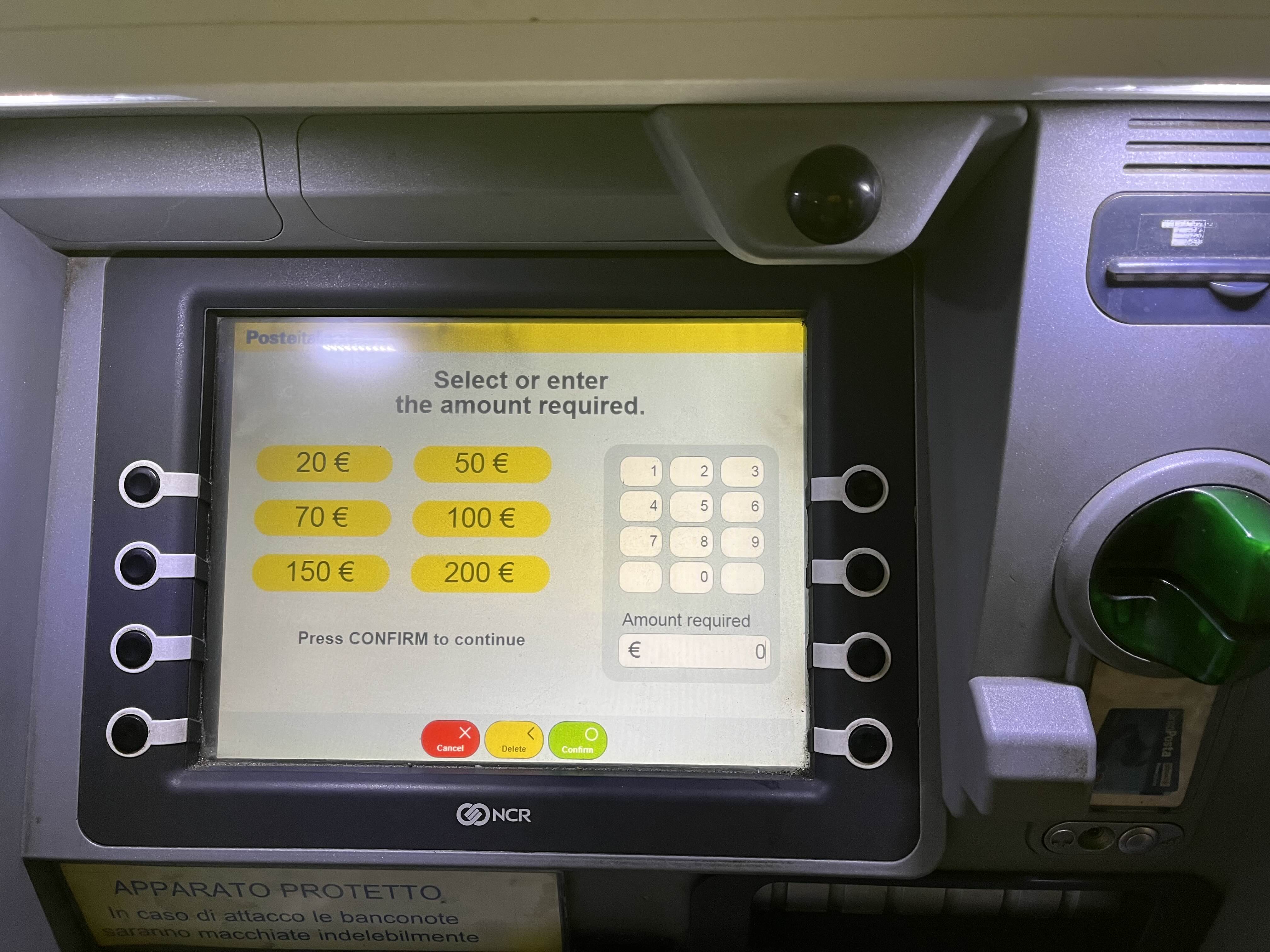 이탈리아의 우체국이자 은행인 poste italiane의 ATM기기를 이용하면 수수료 없이 무료로 현금을 인출할 수 있습니다.